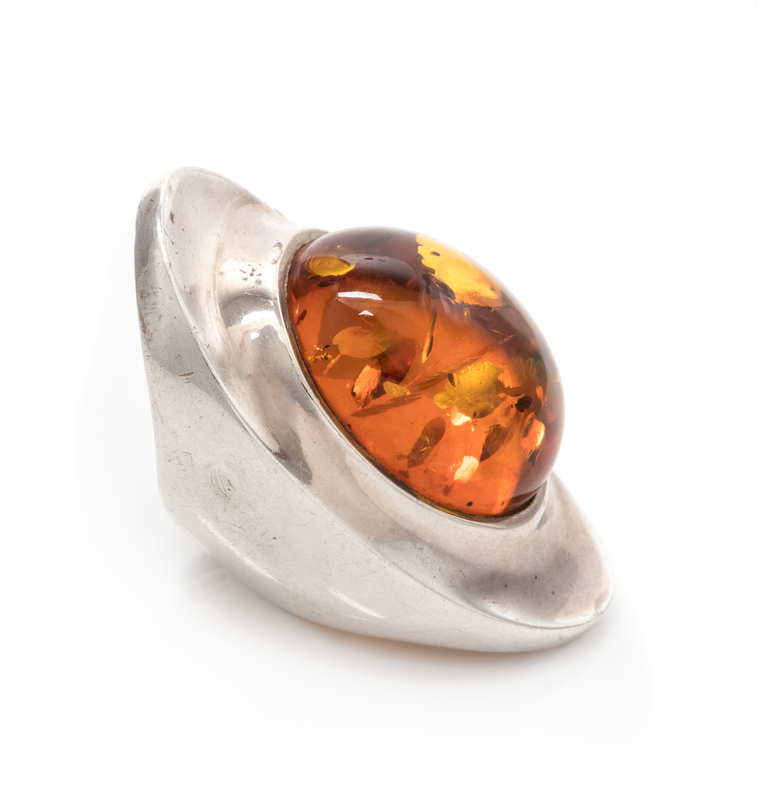 A Modernist Sterling Silver and Amber Ring, Henning Koppel for Georg Jensen, 17.40 dwts.
