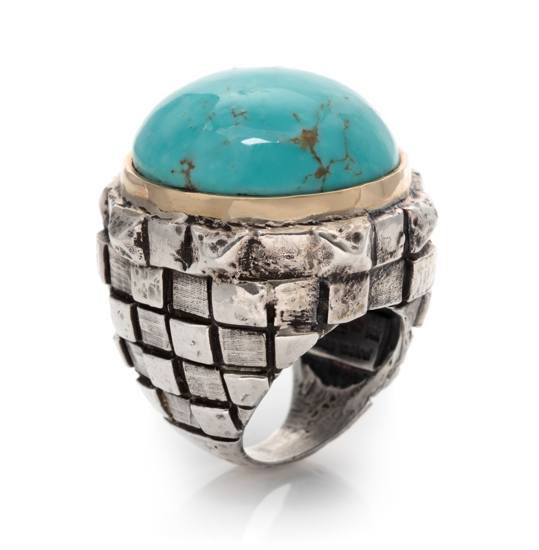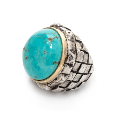 A Sterling Silver, 14 Karat Yellow Gold and Turquoise Ring, Dian Malouf, 28.60 dwts.
