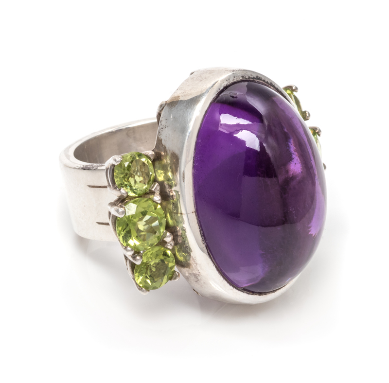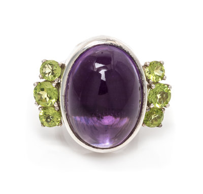 A Silver, Amethyst and Peridot Ring, 17.95 dwts.