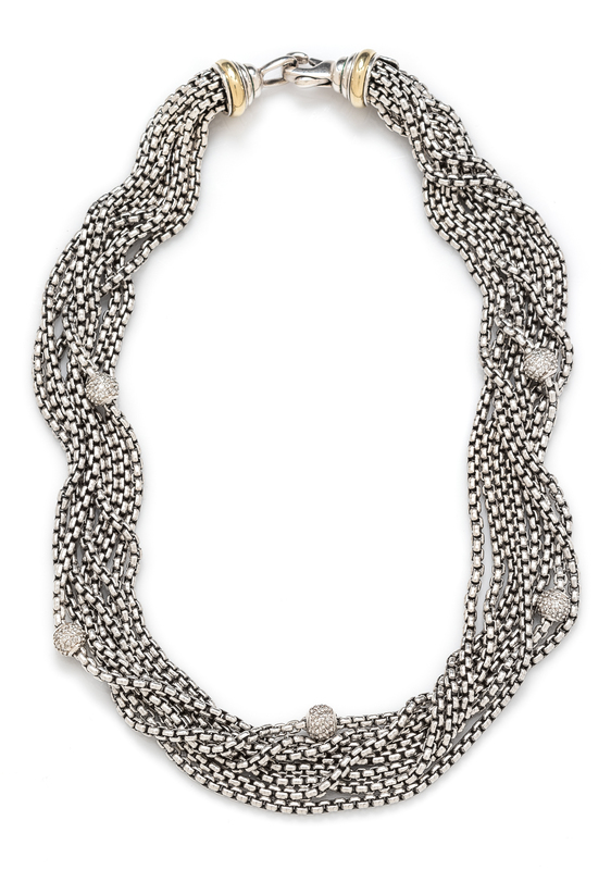 A Sterling Silver, 18 Karat Yellow Gold and Diamond Multistrand Necklace, David Yurman, 66.60 dwts.