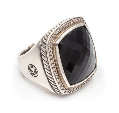 A Sterling Silver, Onyx and Diamond 'Albion' Ring, David Yurman, 15.30 dwts.