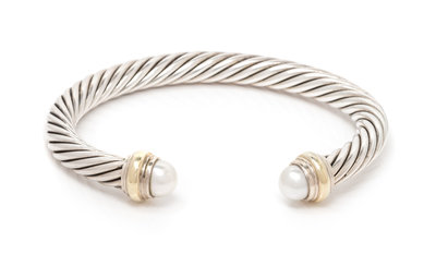 A Sterling Silver, 14 Karat Yellow Gold and Cultured Pearl 'Cable Classics' Bracelet, David Yurman, 28.00 dwts.