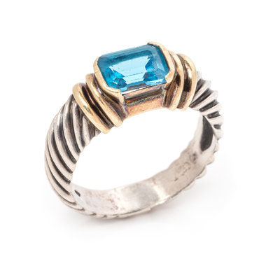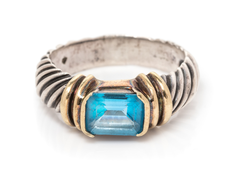 A Sterling Silver, 14 Karat Yellow Gold and Blue Topaz Ring, David Yurman, 4.10 dwts.