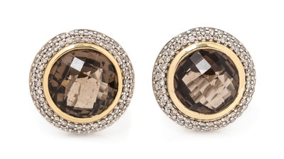 A Pair of Sterling Silver, 18 Karat Yellow Gold, Smoky Quartz and Diamond 'Cerise' Earclips, David Yurman, 8.15 dwts.