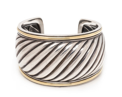 A Sterling Silver and 18 Karat Yellow Gold Cuff Bracelet, David Yurman, 46.20 dwts.