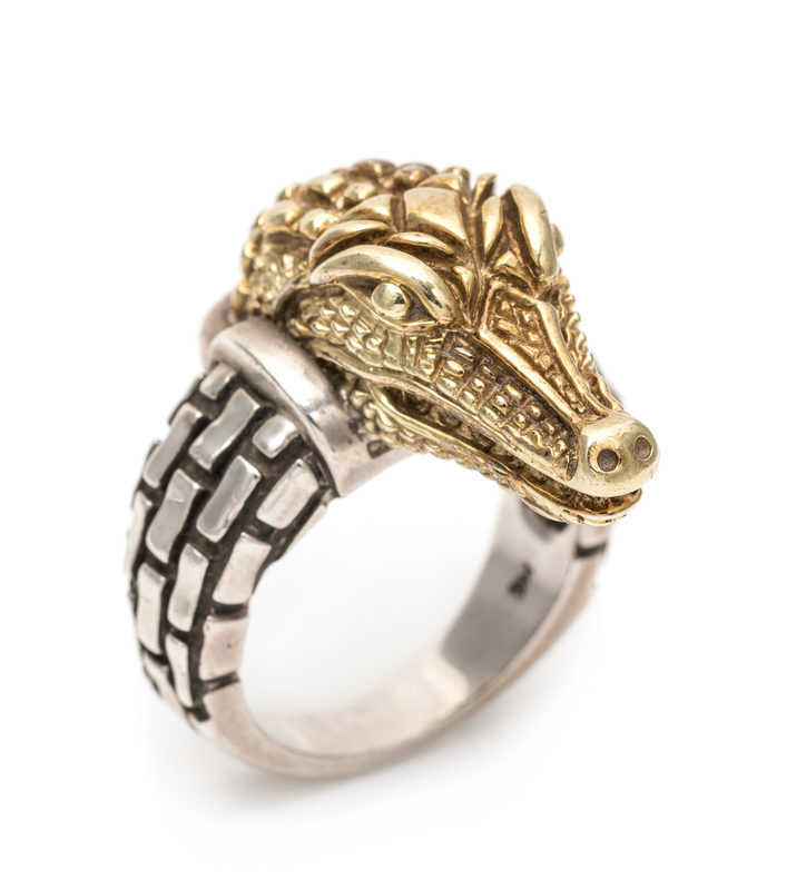 A 14 Karat Yellow Gold and Sterling Silver 'Alligator' Ring, Kieselstein-Cord, Circa 1999, 10.90 dwts.