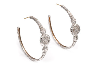 consisting of textured sterling silver hoops containing 38 round brilliant cut diamonds weighing approximately 0.19 carat total.Stamp: (maker's mark for John Hardy) 925.