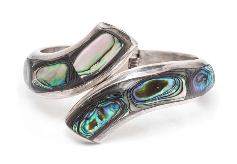 A Sterling Silver and Abalone Bypass Bracelet, Taxco, 38.30 dwts.