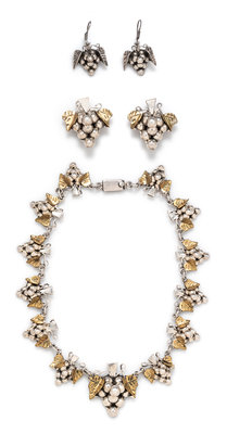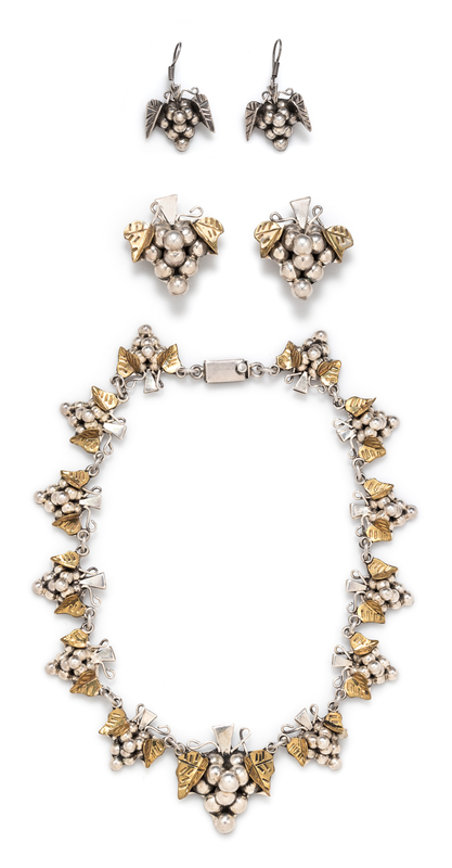 consisting of a necklace containing 13 grape clusters, a pair of matching earclips and matching dangle earrings.Necklace stamp: TB-04 MEXICO 925. Earclip stamp: TB-04 MEXICO 925.Earring stamp: TB-04 92 MEXICO.