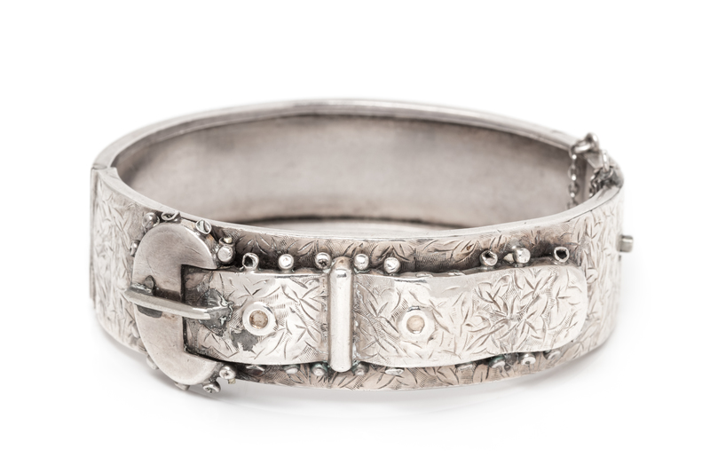 An Antique Sterling Silver Buckle Motif Bangle Bracelet, 23.10 dwts.