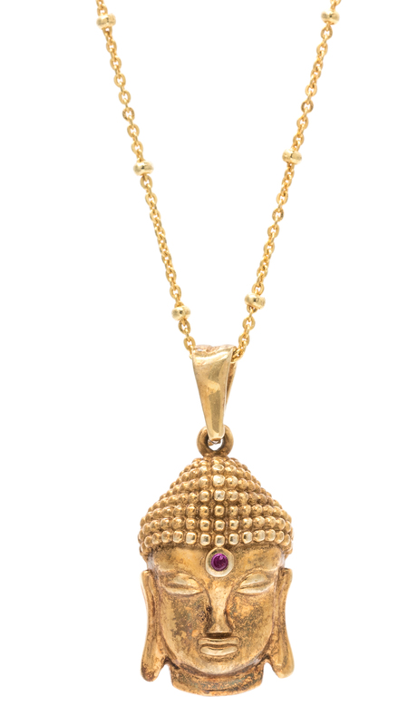 A Gilt Silver and Ruby Buddha Pendant and Chain, 5.10 dwts.