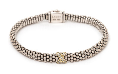 A Sterling Silver, 18 Karat Yellow Gold, and Diamond 'Caviar' Bracelet, Lagos, 14.70 dwts.