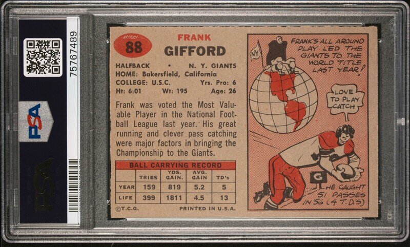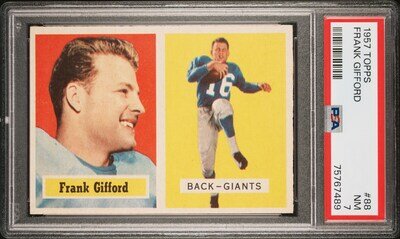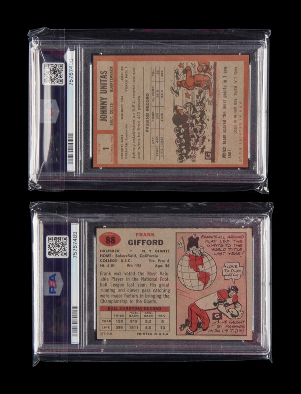A 1957 Topps Frank Gifford Football Card No. 88 (PSA 7 NM) and 1962 Topps Johnny Unitas Football Card No. 1 (PSA 5 EX)