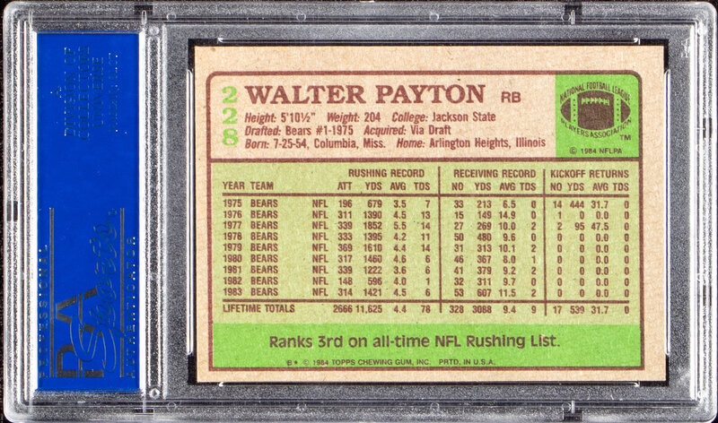 A 1984 Topps Walter Payton Signed Autograph Football Card No. 228 (PSA Authentic)