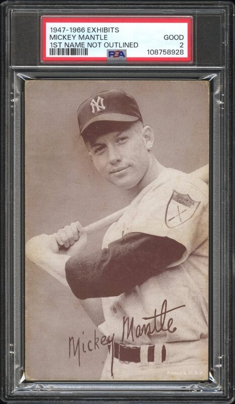 A 1947-66 Mickey Mantle Exhibit Baseball Card - First Name Not Outlined (PSA 2 GOOD)