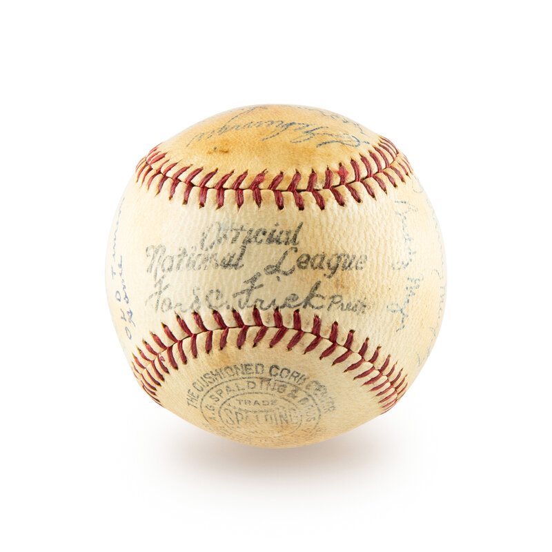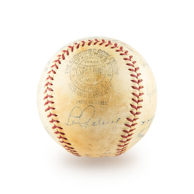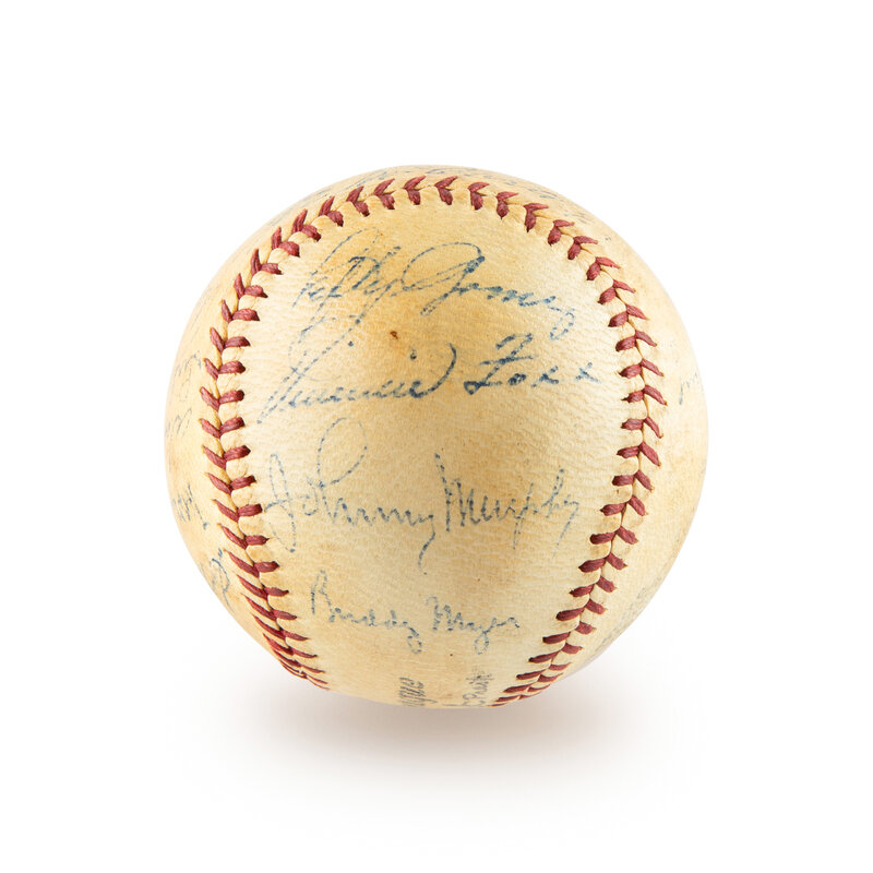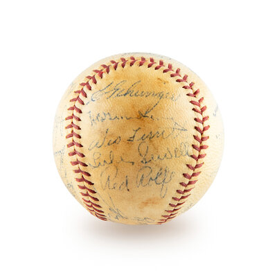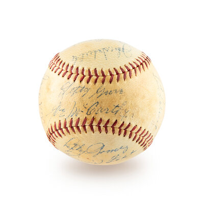 Comprising signatures of Lou Gehrig, Joe McCarthy, Lefty Grove, Charlie Gehringer, Hank Greenberg, Wes Ferrell, Luke Sewell, Red Rolfe, Jimmie Foxx, Johnny Murphy, Buddy Myer, John Schulte, Mel Harder, Lefty Gomez and Doc Cramer.