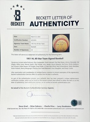 A 1951 National League All Star Team Signed Autograph Baseball Including Jackie Robinson (Beckett Authentication Services)