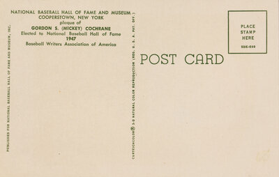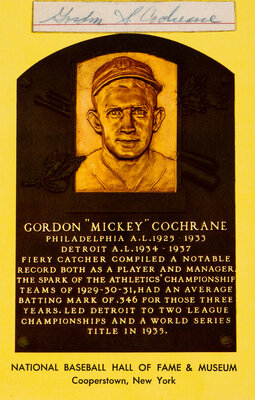 A Mickey Cochrane Hall of Fame Postcard With Cut Gordon Cochrane Signature (Beckett Authentication Services Pre Certified)