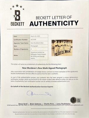 A New York Yankees New Murderer's Row Photograph Signed by Joe DiMaggio, Frank Crosetti, Bill Dickey and George Selkirk (Beckett Authentication Services)