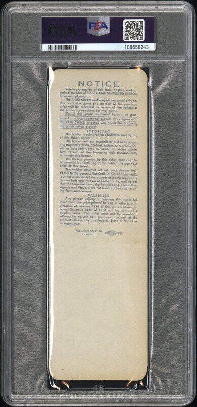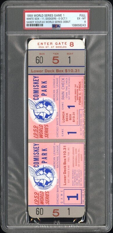 A 1959 World Series Game One Full Ticket - Sandy Koufax World Series Debut (PSA 6 EX-MT) - POP Four, Only Five Higher