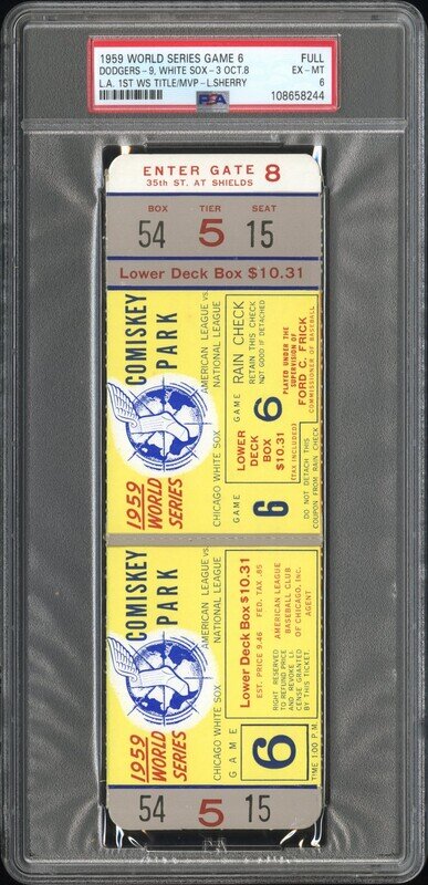A 1959 World Series Game Six Full Ticket - First Dodgers World Series Championship in Los Angeles (PSA 6 EX-MT) - POP Seven