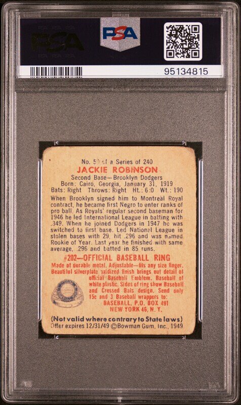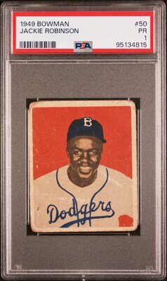 A 1949 Bowman Jackie Robinson Baseball Card No. 50 (PSA 1)
