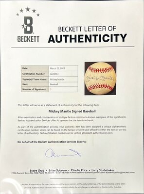 A Mickey Mantle Single Signed Autograph Baseball (Beckett Authentication Services)