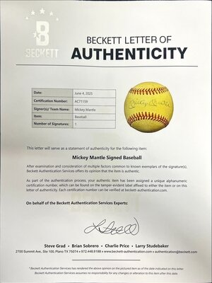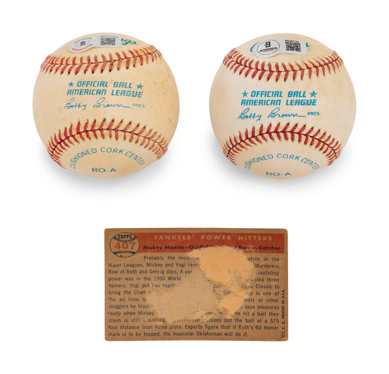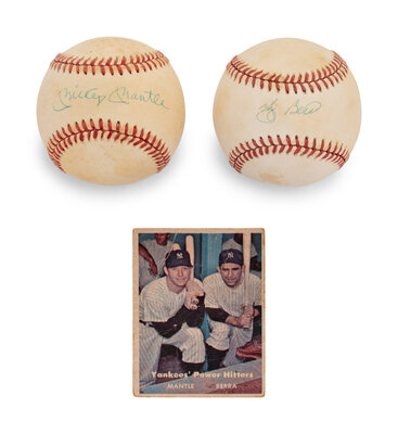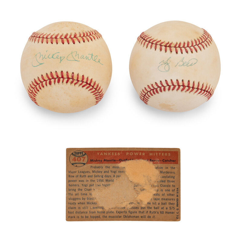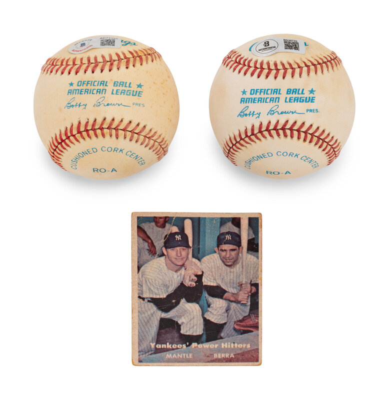 A Mickey Mantle and Yogi Berra Signed Autograph Baseball Collection with 1957 Topps Baseball Card (Beckett Authentication Services)