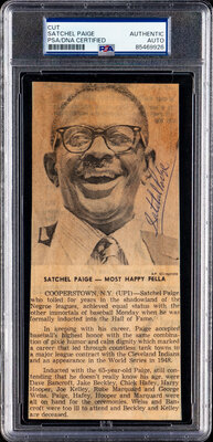 A Satchel Paige Signed Autograph Cut (PSA ENCAPSULATED)
