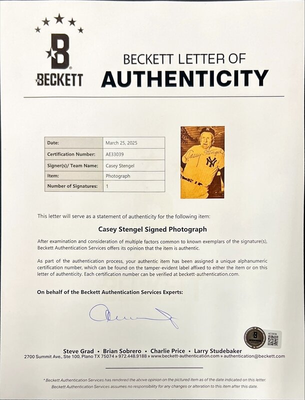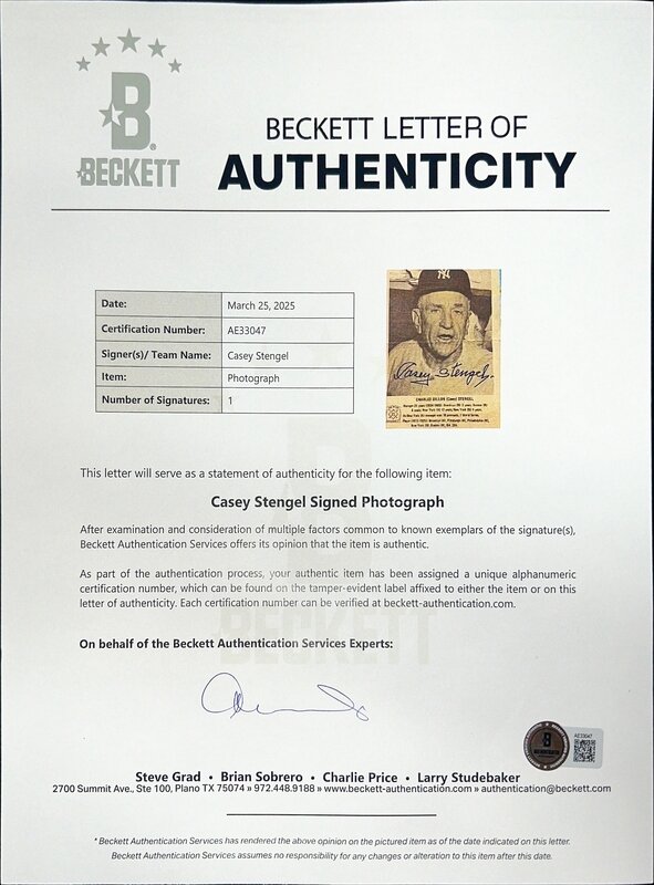 A Collection of Casey Stengel Signed Autographs (Beckett Authentication Services)