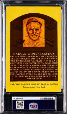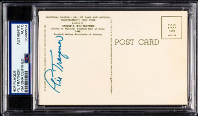 A Pie Traynor Signed Autograph Hall of Fame Postcard (PSA ENCAPSULATED)