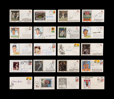 A Large Collection of Baseball Hall of Fame Signed Autograph Cachets (71)