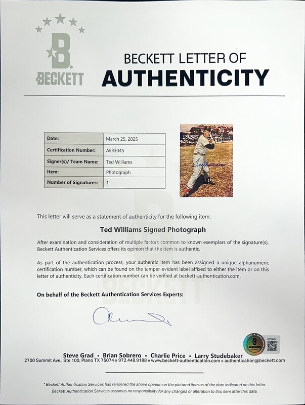 A Collection of Baseball Hall of Fame Signed Autograph Photographs Including Williams, Aaron, Mays and Koufax (Beckett Authentication Services)