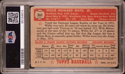 A 1952 Topps Willie Mays Rookie Baseball Card No. 261 (PSA 1)