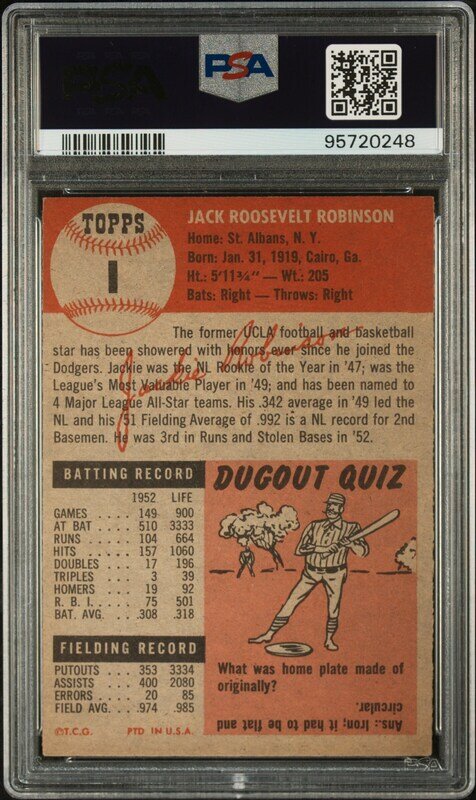 A 1953 Topps Jackie Robinson Baseball Card No. 1 (PSA 5 EX)