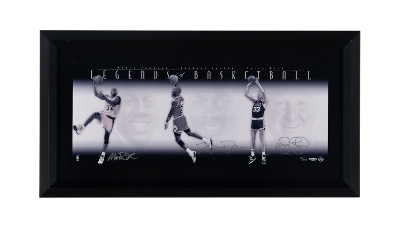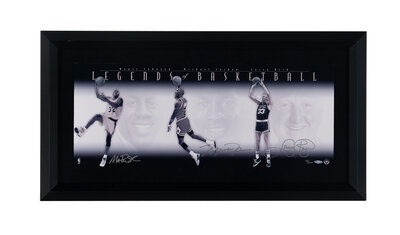 A Michael Jordan, Larry Bird and Magic Johnson Signed Autograph Legends of Basketball Large Framed Display (Upper Deck Authenticated) - Platinum Edition
