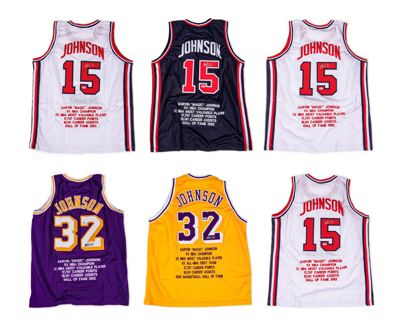 A Collection of Magic Johnson Signed Autograph Jerseys - Lakers and Dream Team (PSA)