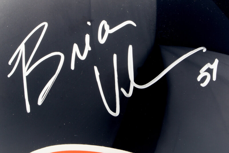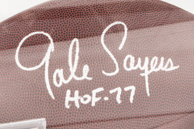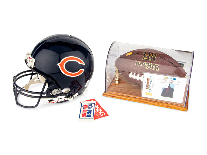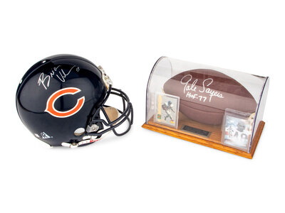 Comprising a Brian Urlacher signed full size helmet and Gale Sayers signed football.