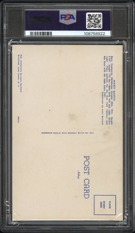 A 1953-55 Mickey Mantle Dormand Postcard - Bat on Shoulder (PSA 3 VG)