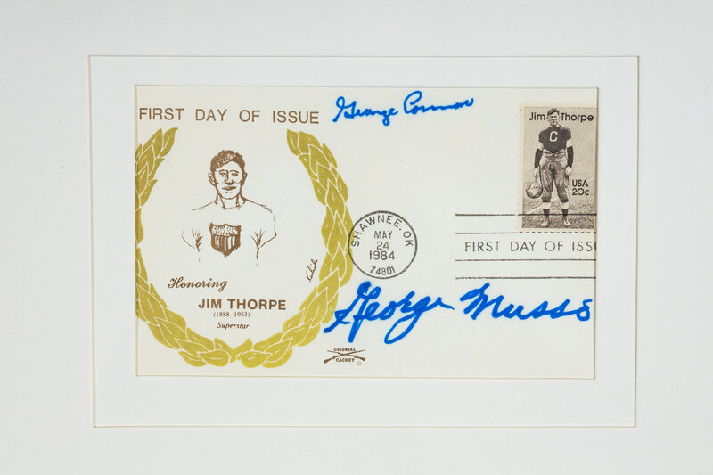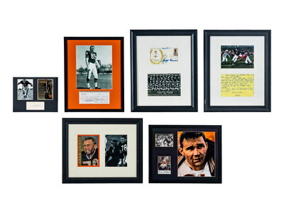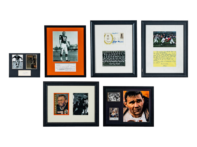 Framed displays Including an original one-of-a-kind personal photo signed by Doug Atkins; signed Check from the home of Mike Ditka; signed post card of Stan Jones; 1941 Team Display with signed envelope of George Connor and George Musso with an additional signed display of George Connor and a personal letter written and signed by George McAfee.