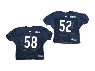 A Group of Chicago Bears Practice Worn Uniforms Jersey and Pants – Numbers 58 and 52