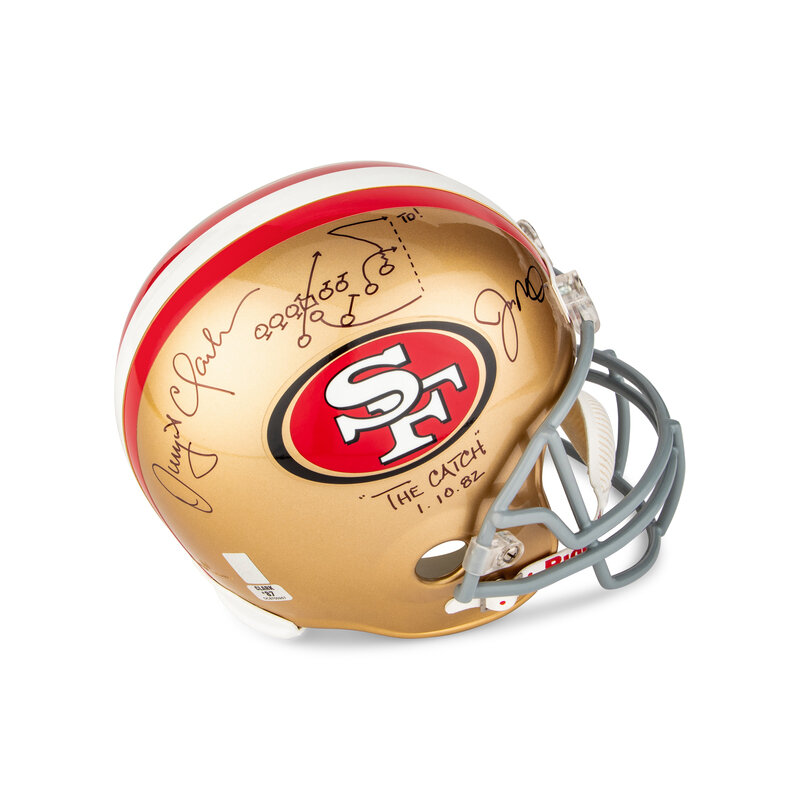 A Joe Montana and Dwight Clark Dual Signed Autograph San Francisco 49ers Full Size Helmet