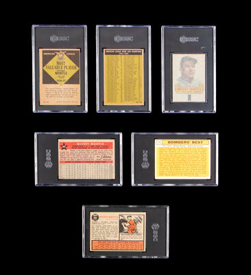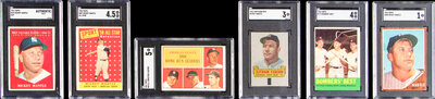 Comprising the following issues: 1958 Topps No. 487 (SGC 4.5 VG-EX+); 1961 Topps No. 44 (SGC 5), No. 475 (SGC Authentic Miscut); 1962 Topps No. 200 (SGC 1); 1966 Topps Rub Offs (SGC 3 VG); 1963 Topps No. 173 (SGC 4 VG-EX).