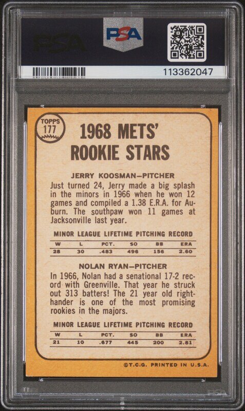 A 1968 Topps Nolan Ryan Rookie Baseball Card No. 177 (PSA 5 EX)