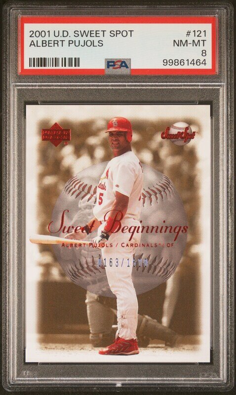 A 2001 Upper Deck Sweet Spot Albert Pujols Rookie Card No. 121 (PSA 8 NM-MT) Numbered 163/1500