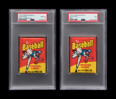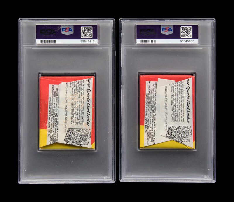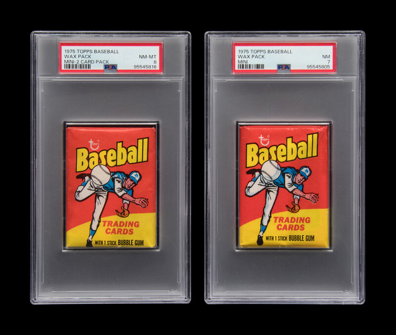 Comprising a PSA 7 NM Pack of 1975 Topps Mini Baseball Cards and a PSA 8 NM-MT Test Pack of 2-Card 1975 Topps Mini Baseball Cards