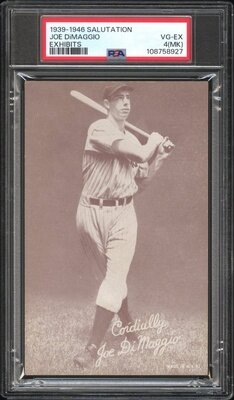 A 1939-46 Salutation Exhibits Joe DiMaggio Baseball Card (PSA 4MK VG-EX)