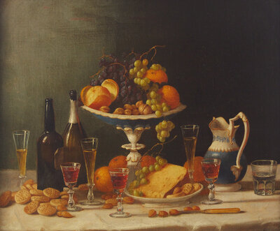 Still Life with Fruit, Cheeses, Nuts, Glasses, and Ewer