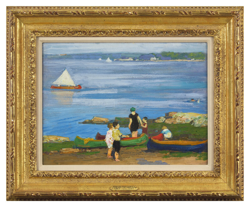 signed Edw H Potthast, titled, and inscribed (on label affixed to reverse)
