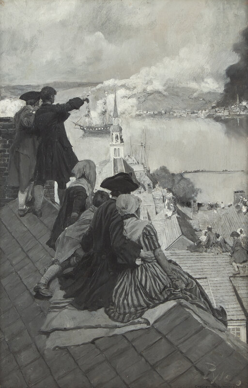 signed Pyle and inscribed Copyright 1901 by Harper & Bros. (lower right); also inscribed The Battle of Bunker Hill / ... [illegible] / [illegible] in pencil (on the reverse)